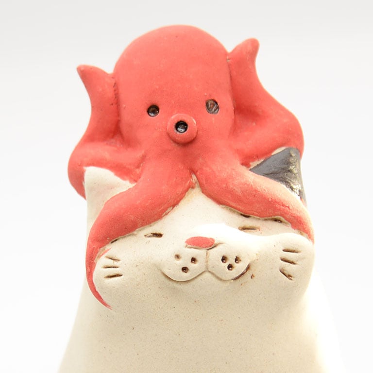 山形県米沢市で古くから作られてきた伝統民芸品「相良人形(サガラニンギョウ)」という愛らしい土人形があります。その中に、福を招く「猫」と多くの幸せと書いて「多幸」から連想される蛸を掛け合わせたシュールな縁起物があります。